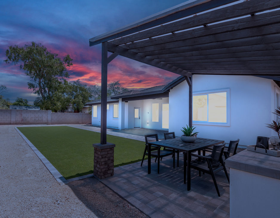 This stunning NEW CONSTRUCTION 4-bedroom, 2.5-bath oasis spans over 2406 sq. ft. of luxurious living space on a generous 9,853 sq. ft. lot. Enjoy unparalleled comfort with features like 2x6 construction, insulated interior walls, vaulted ceilings, exposed architectural beams, and a cozy large format black tile fireplace. The gourmet kitchen boasts an oversized waterfall leather finish granite island, 42'' cabinets, and premium appliances. Enjoy a dedicated den/office and unwind in the serene primary suite with separate nook, a spacious walk-in closet and freestanding soaker tub. Entertain effortlessly in the beautifully landscaped backyard with a shaded BBQ deck and paver patio. This home is a perfect blend of elegance and functionality. Welcome home!